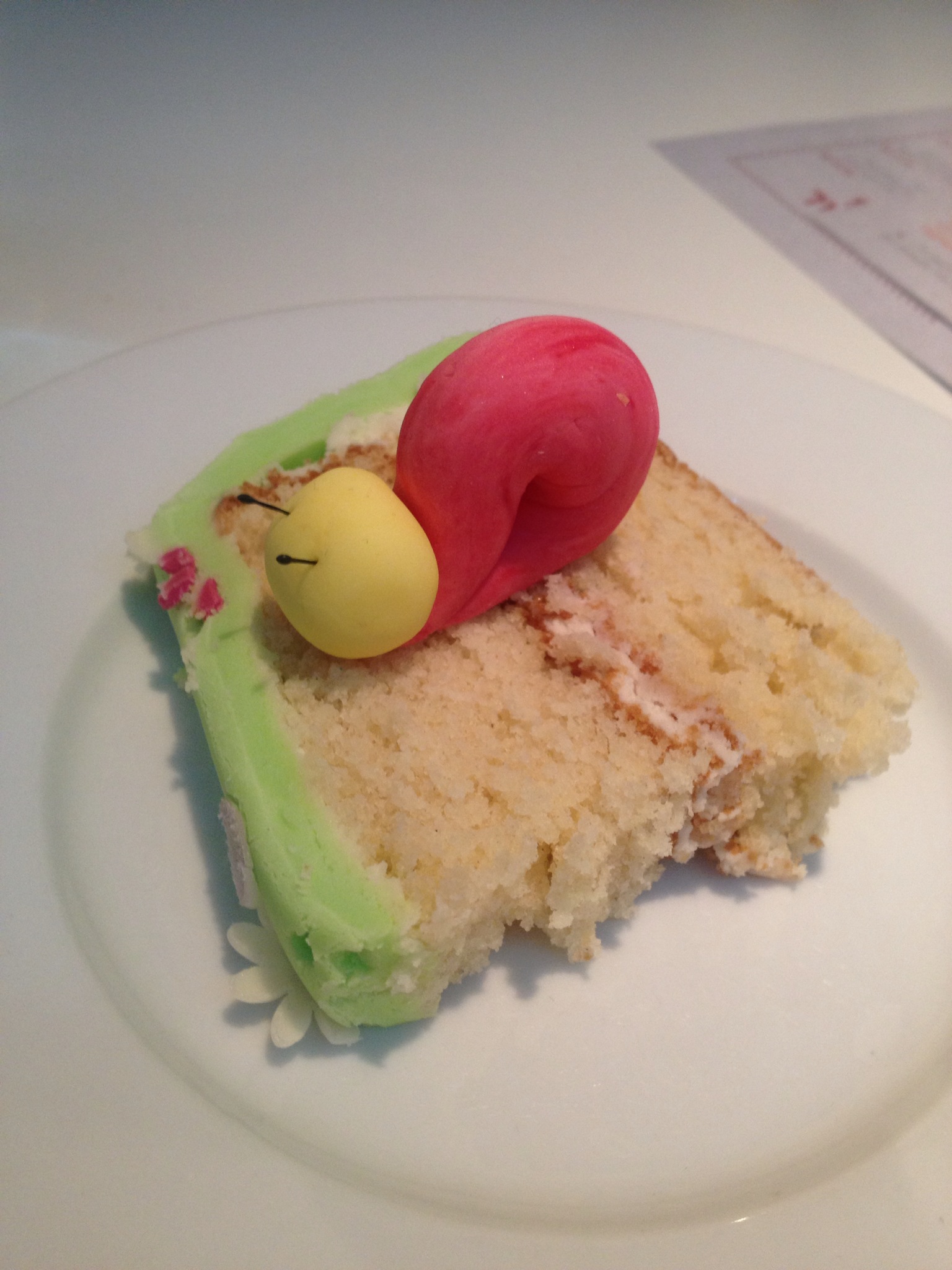 My first idea for the decoration was to use green fondant icing covered in small fondant icing, but then decided to mix it up a little and do a few animals with the inspiration from the Cake Show International last year and added some butterflies feeding on the flowers, a few caterpillars, snails and some cute little bunnies burrowing down into the cake – possibly my favourite part of the cake.